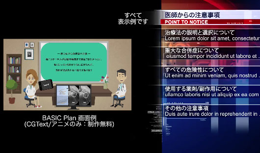治療法名•オーソライズド医師名•診療科名表示(CG全画面可能)